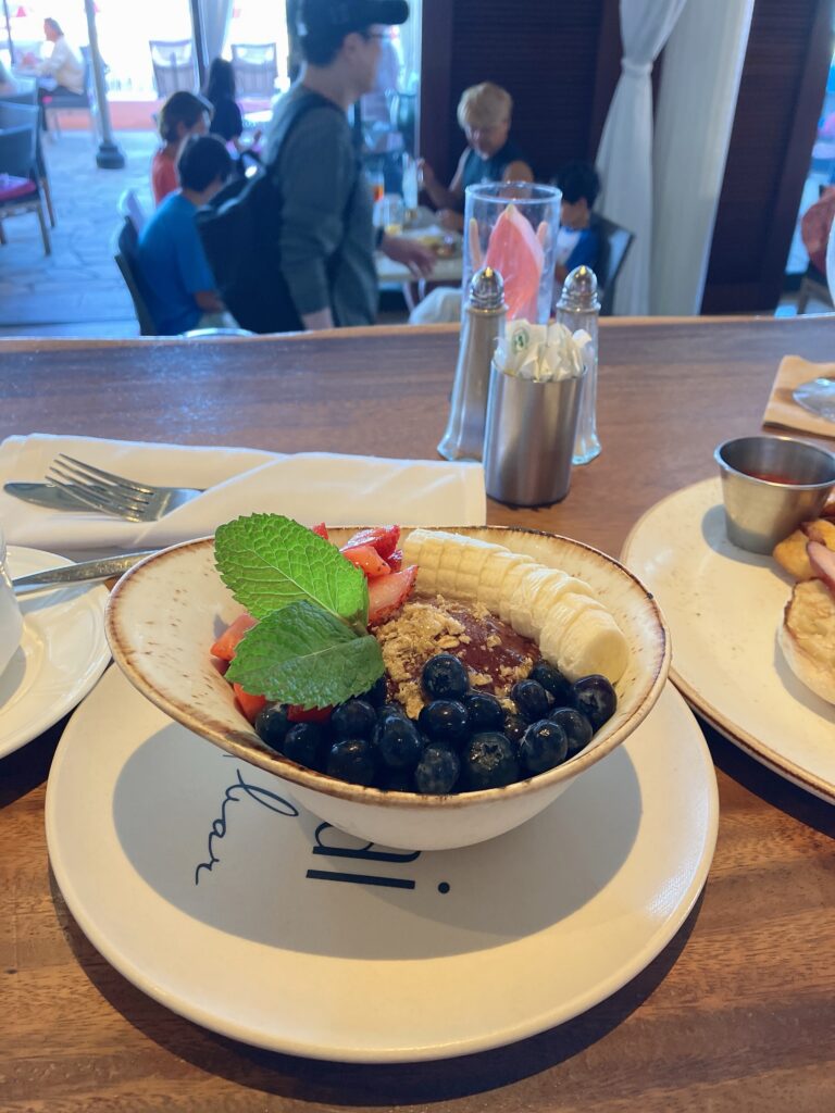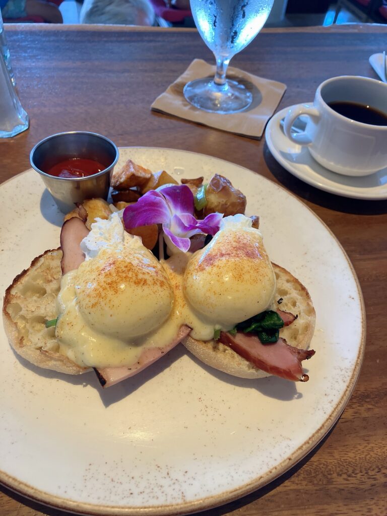 サーフラナイの朝食で食べたエッグベネディクトとアサイーボールはとても美味しかった。