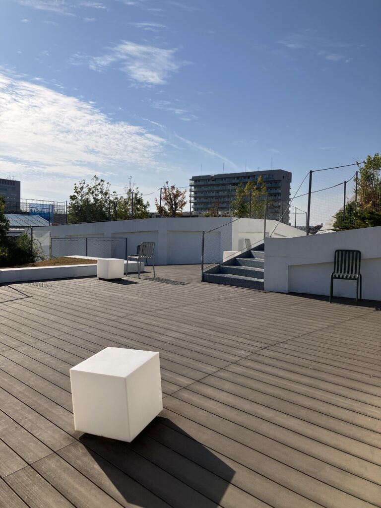 屋上が見晴らしが良くて、季節の良い日は最高ですね。飲食も可能です。
