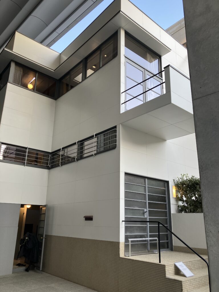 - 「白い箱」のモダンデザイン:装飾を排した立方体のフォルム、フラットな屋根、大きなガラス窓など、バウハウスに代表される国際様式(インターナショナル・スタイル)の影響を強く受けています。